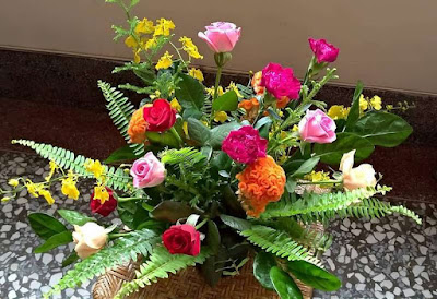 阿母上午因朋友插花團參加人數不多,被邀去"插花啊"~帶回的美麗盆栽。